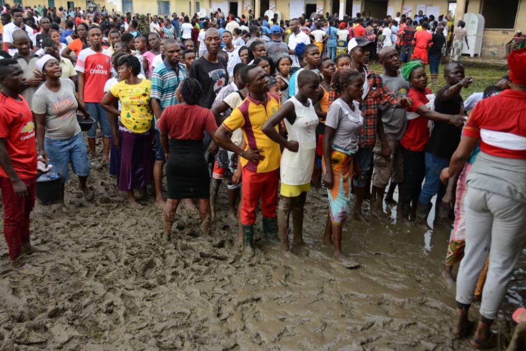 In photos captured by our correspondent, some of the voters waded through the mud barefoot, while a few had on some footwear.