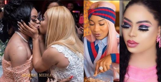 Nigerians have pointed accusing fingers at Bobrisky after the duo were caught kissing and spending a good time together.