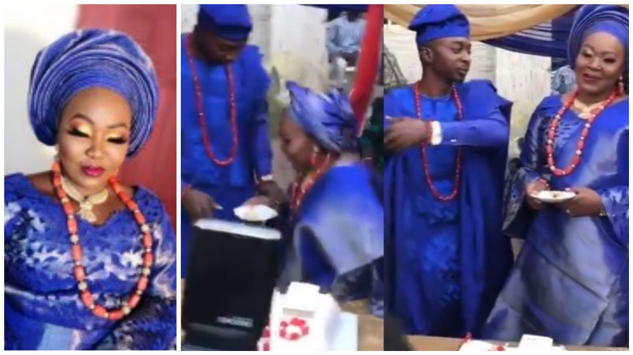 Yoruba man has defiled a long-standing tradition of wives kneeling down to feed their husbands during a toast at their wedding.