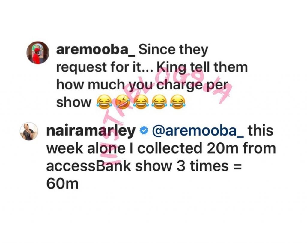 week.This was after he was questioned to reveal the amount he makes perfect show. In response the singer stated that he got paid N20million three consecutive times this week by Access Bank for shows.