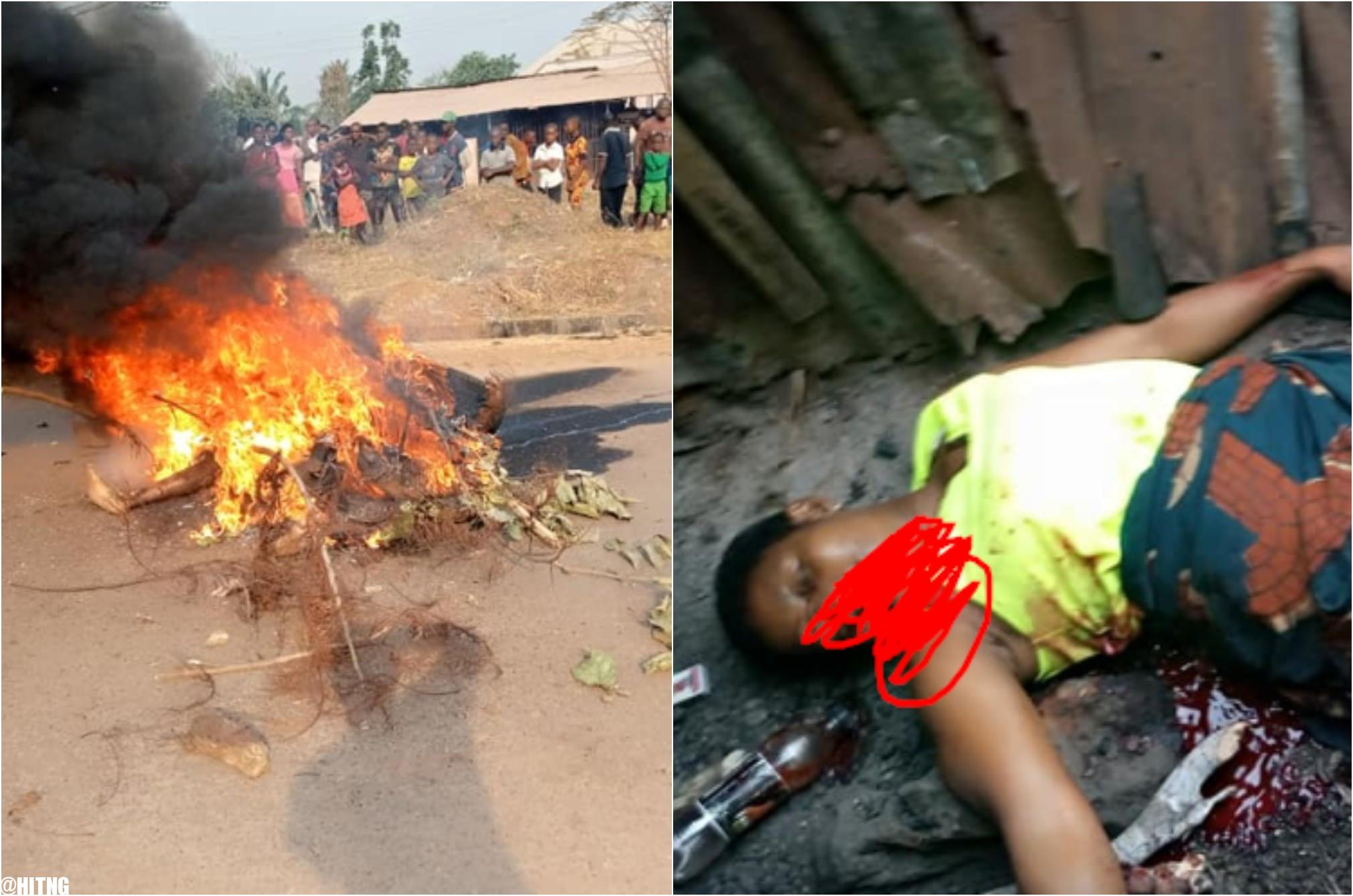 An indigene of Nkporo community in Abia who reportedly shot and killed his wife over a minor issue today January 27, was beaten and set ablaze by other residents of the community.