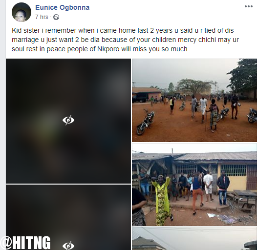 Kid sister i remember when i came home last 2 years u said u r tied of dis marriage u just want 2 be dia because of your children mercy chichi may ur soul rest in peace people of Nkporo will miss you so much