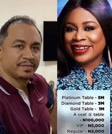 OAP Daddy Freeze has criticized singer Sinach for a show she's organizing, where booking a platinum table costs 5 million Naira.