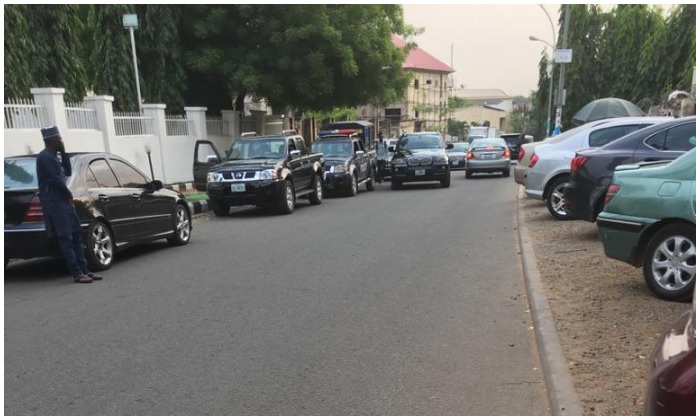 Policemen in four pick-up patrol vehicles have taken over the National Secretariat of the All Progressives Congress